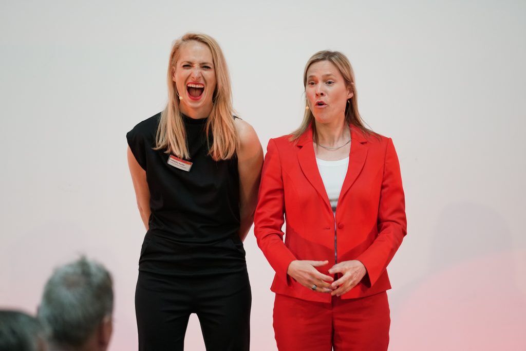 Außerdem haben Katharina Aguilar und Katrin Hansmeier das Publikum in ihren Rollen als Zwischenruferinnen & Keynote Speakerinnen mit ganz viel Humor und der einen oder anderen kurzen Gesangseinlage durch die Vorträge begleitet und immer wieder zum Lachen gebracht.
